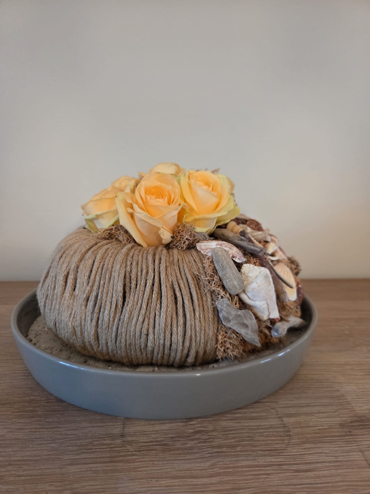 Studio Bloem zorgt voor het basismateriaal, u zorgt voor de schaal, het touw en de bloemen naar eigen smaak en budget.